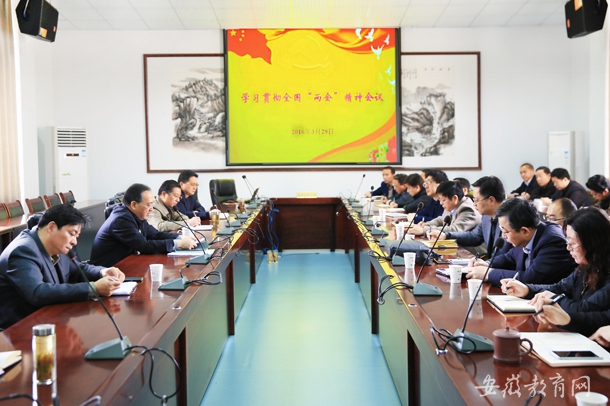 王磊指出,要深刻理解全国“两会”精神,深刻领会习近平总书记重要讲话的精神实质,把学习贯彻全国“两会”精神特别是习近平总书记重要讲话精神作为当前一项重要政治任务,精心组织,周密安排,迅速兴起学习宣传贯彻热潮,切实把思想和行动统一到中央部署上来。要坚持以全国“两会”精神为引领,结合学校实际,扎实做好各项工作,为“十三五”发展开好局、起好步。