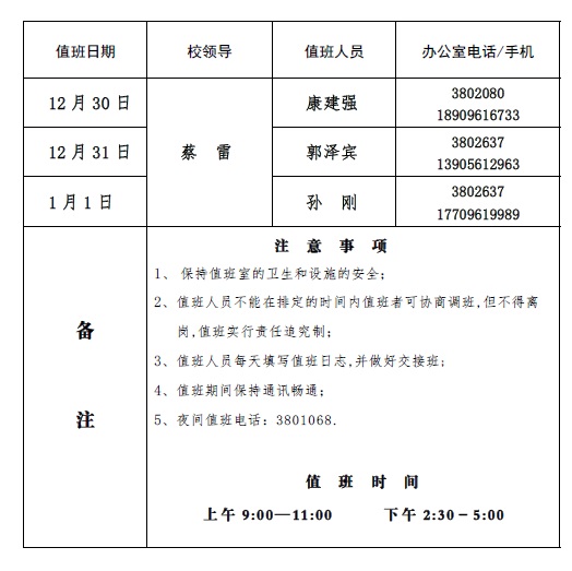 英国best365官方网站入口(滨湖校区)后勤服务与管理与处2018年元旦假期值班表