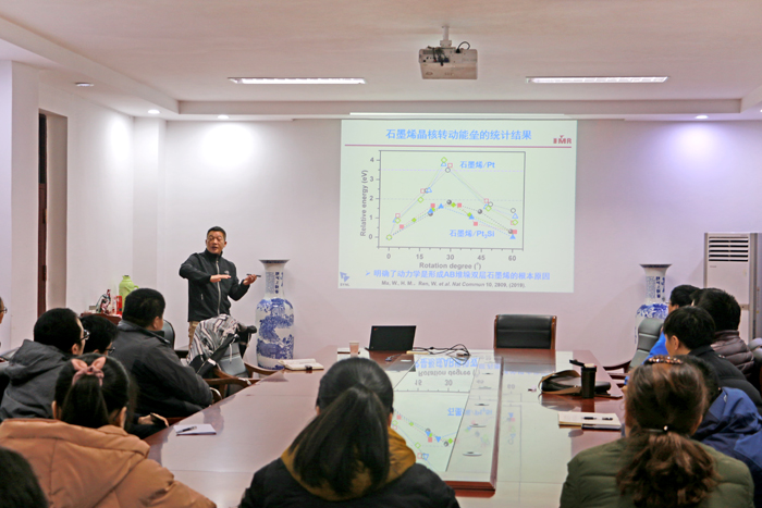 2019年12月16日下午2:30,尹利长研究员围绕“低维纳米碳材料电子结构及生长机理的DFT研究”主题作了精彩的学术报告。报告从石墨烯生长-刻蚀-再生长机理、AB堆垛双层石墨烯生长机理、机器学习与材料设计三个方面进行了深入阐述。通过电子或者原子级别的第一性原理密度泛函理论,分析了石墨烯材料的生长机理以及由此扩展到其它材料,为能源材料的研究提供一定的理论依据。尹利长研究员的报告深入浅出、主题鲜明、具有很高的学术价值,参加报告会的师生均受益匪浅。