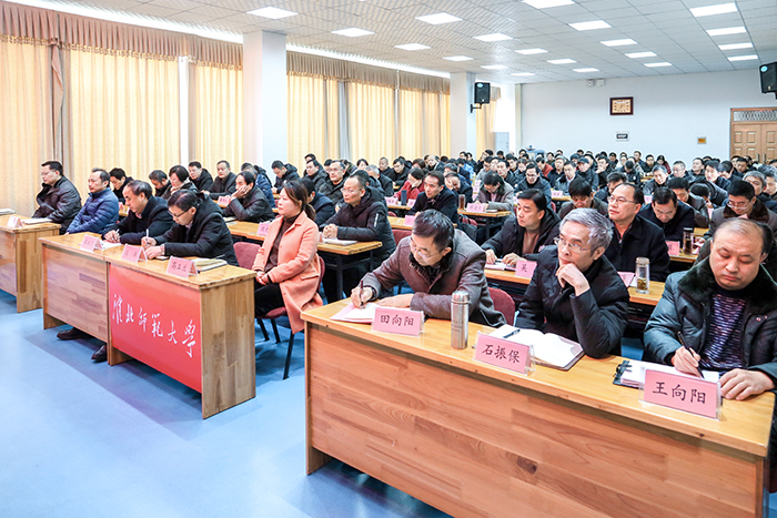 校党委书记陈士夫在讲话中指出,一要旗帜鲜明讲政治,贯彻落实党的十九届四中全会精神。要以习近平新时代中国特色社会主义思想为指导,以党的政治建设为统领,坚定政治信仰、强化政治领导、提高政治能力、净化政治生态,全面加强党对学校工作的全面领导。要做好主题教育总结和建立长效机制工作,抓好现代大学制度建设,重点做好校院两级管理体制改革、分配制度改革,扎实推进治理体系和治理能力现代化建设。二要凝心聚力抓重点,扎实推进高水平师范大学建设。要以推动学校内涵建设,提升学校影响力为重要抓手,紧紧围绕学校重点工作安排,认真梳理工作思路,思考工作方式方法,制定具体落实措施,全力推进学校各项工作任务落实。三要狠下力气改作风,切实提高新时代干部工作能力。要将改进工作作风作为提高新时代干部队伍工作能力的首要任务。要正确认识和处理干部工作作风与工作能力的关系,从主观意志上形成对履职尽责的正确认识,形成工作热情、工作激情,形成创新意识、竞争意识;从实际行动上创新工作方法、提高执行能力,只有从态度和行为两个方面同时改进,才能打造扎实的工作作风,才能真正提高工作能力。他强调,艰辛成就伟业,奋斗创造辉煌,全校师生员工要继续群策群力、共同奋斗,下定决心解决制约学校发展的瓶颈问题,真正落实学校第二次党代会目标任务,学校就一定能够取得新的更大发展,建设高水平师范大学的奋斗目标就一定能够早日实现。