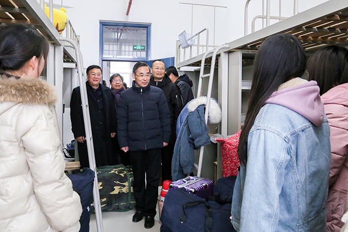 校党委书记陈士夫、校长姚佐文、副书记朱德顺、副校长蔡雷、纪委书记曹灯明等校领导,走访慰问一线工作人员和搬迁同学。陈士夫指出,搬迁工作是检验主题教育成效的“试金石”,相关单位要按照方案和预案,勇于担当、强化服务,切实做到安全、有序、高效,做好搬迁及后续工作,积极创造安全优良的宿舍生活条件,充分保障学生的学习生活。陈士夫还鼓励广大同学尽快适应新环境,安排好寒假期间学习生活,为新学期开学做好准备。