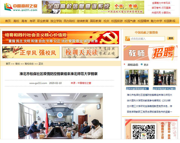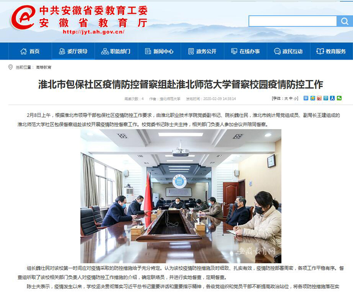 《中国高校之窗》、《安徽教育网》报道淮北市包保社区疫情防控督察组来365官网督察