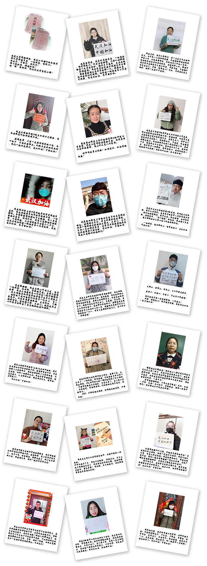 篇幅有限且纸短情长,这篇文稿并不能将所有同学发来的信息都展示出来,更不能将同学们的情感完全抒发出来,但此刻我们温情无限,力量无限。希望在接下来的日子里,同学们继续保持良好的防护,在家中静待春天的到来。学校始终关心着你们,等待着你们平安健康归来。