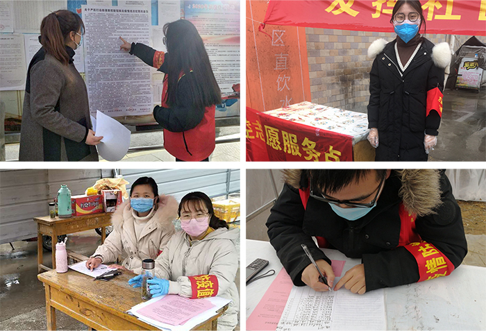 2017级翻译1班宗十一在看到家乡社区发的志愿者招募通知时,深觉作为一名预备党员应该承担起相应的责任,便主动去社区报名成为志愿者。向居民介绍抗击疫情的相关知识,为他们测量体温,认真记录出入小区居民情况,劝阻小区居民不要聚会。她说:“有一群勇于挺身而出的人,他们走在我们的前面,非常勇敢,而我在后方也要做我力所能及的事情尽一己之力。”