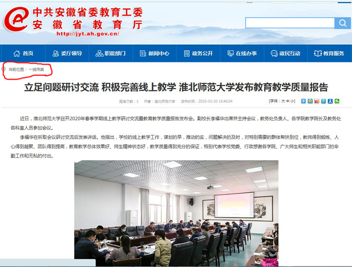 【安徽教育网】:立足问题研讨交流 积极完善线上教学 英国best365官方网站入口发布教育教学质量报告