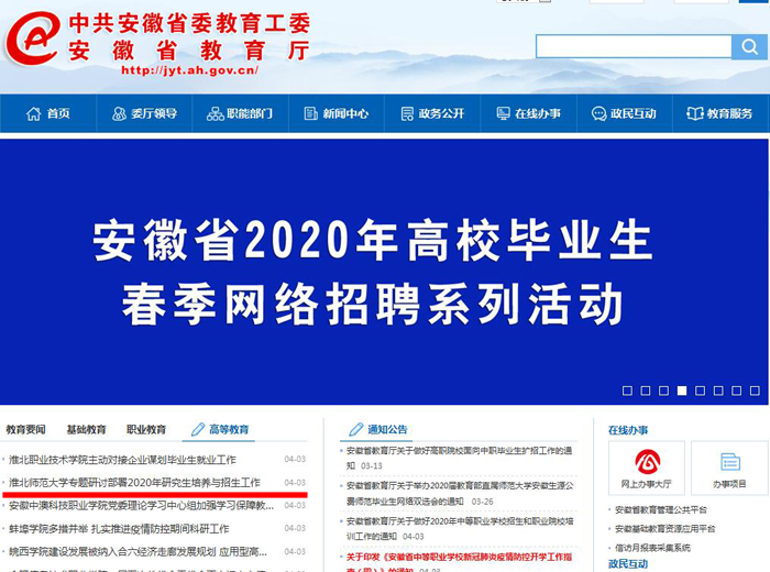 链接地址:http://jyt.ah.gov.cn/ 《安徽教育网》首页;
