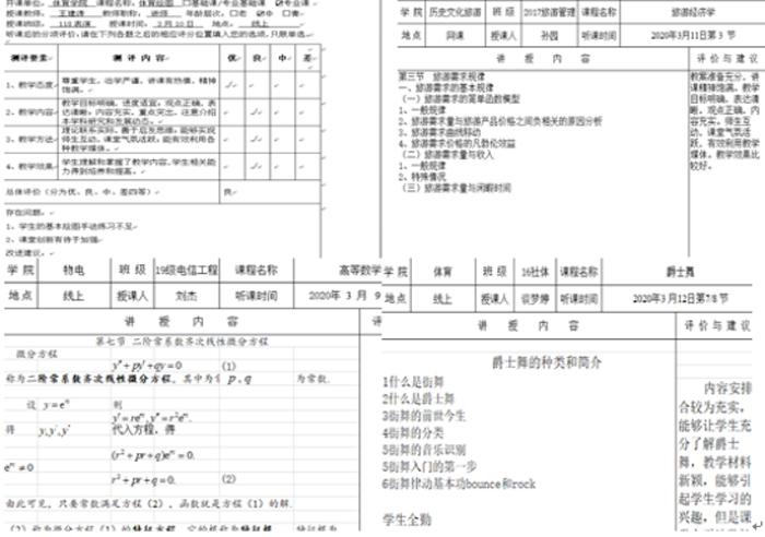 督导组专家及教师之间相互听课,教学评价基本以优、良为主,并给出指导性意见,帮助老师们提升教学质量。