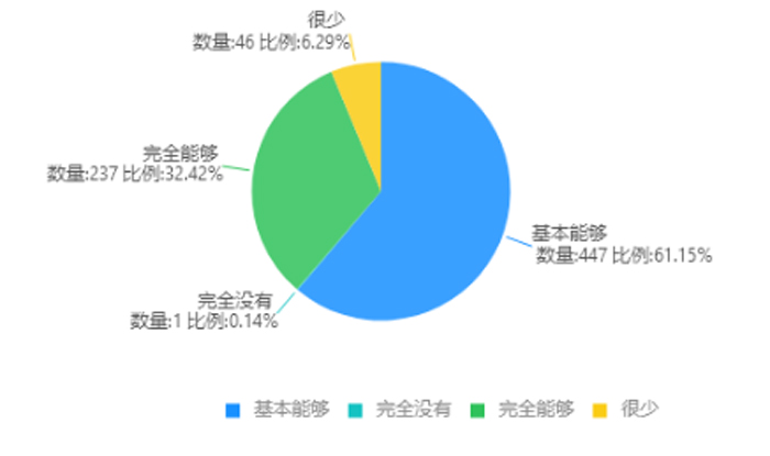 而学生对老师提供的课程资源满意率高,非常满意和较满意的比率分别是31%和51.39%。
