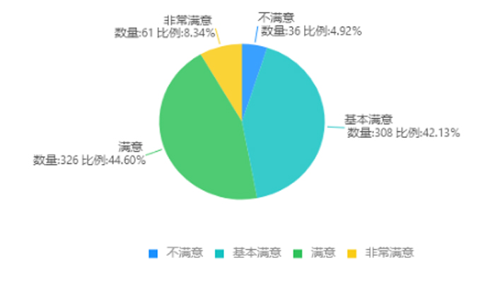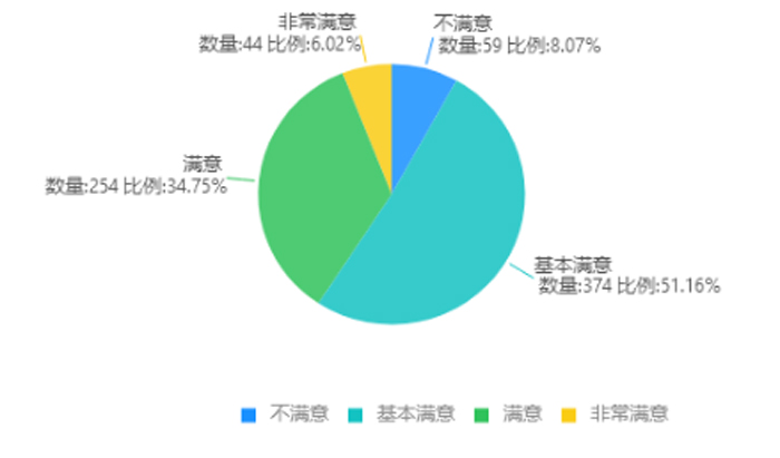 教师对学生在线学习质量评价。91.93%的教师对学生学习质量持非常满意、基本满意、满意态度,仅有8.07%不满意。