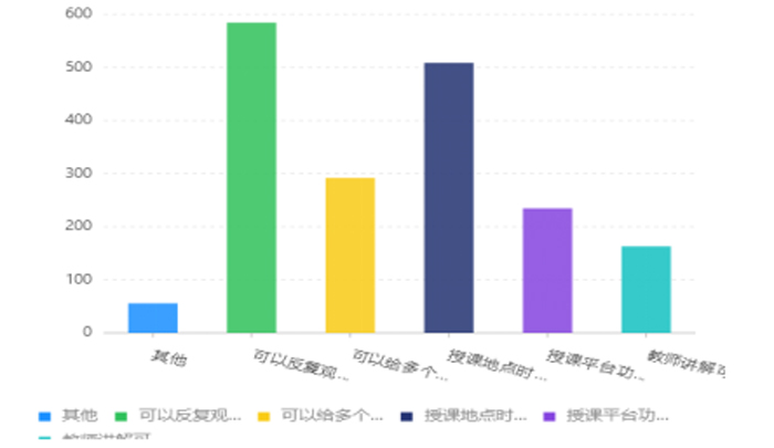 在线教学优势。可以反复观看、授课时间地点不受限制等在线教学优势排序靠前。