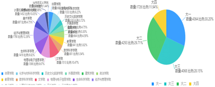 全校学生问卷反馈。教务处在第三周线上教学结束后,开展了学生线上学习情况问卷调查,覆盖全校16个学院4个年级的学生,共回收有效问卷14099份。