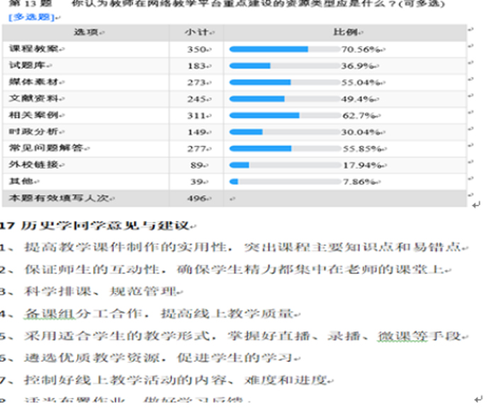 根据调查结果显示,绝大部分教师能够很好地开展课堂互动,布置各项预习和测评作业,教师对教学平台、学生学习质量、教学效果等比较满意。