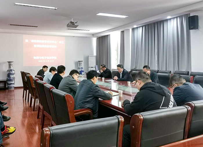 4月22日下午,物理与电子信息学院在学院会议室召开“课程思政教学研究中心”成立会议。 校党委常委、副校长李福华,校党委常委、教务处处长卓翔芝等出席会议。学院领导及学院“课程思政教学研究中心”成员参加会议。