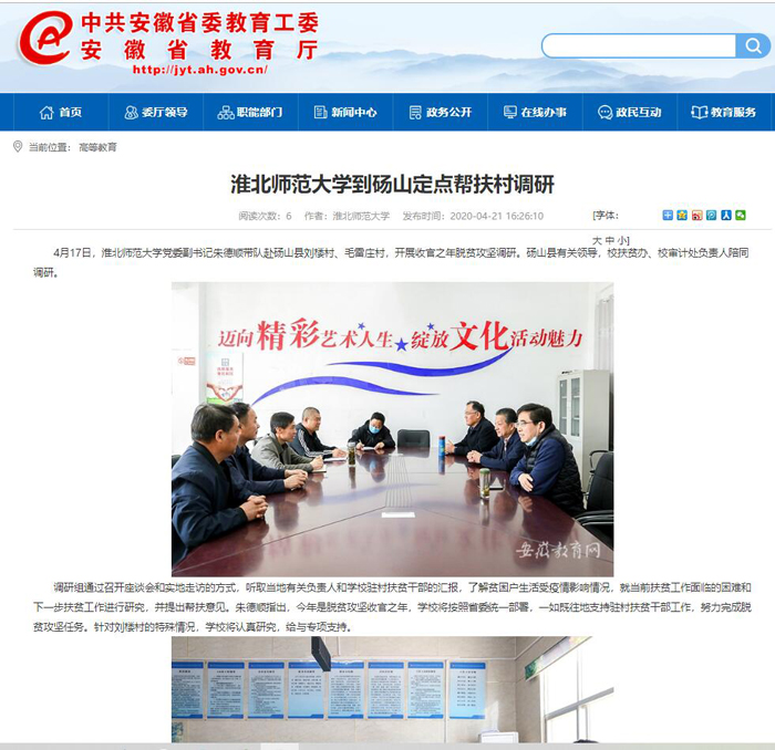 【安徽教育网】:英国best365官方网站入口到砀山定点帮扶村调研 来源:党委宣传部 发布时间:2020-04-24 15:24:16 浏览次数: 次 【字体:小 大】 4月17日,英国best365官方网站入口党委副书记朱德顺带队赴砀山县刘楼村、毛雷庄村,开展收官之年脱贫攻坚调研。砀山县有关领导,校扶贫办、校审计处负责人陪同调研。安徽教育网对此进行了关注。链接地址:http://jyt.ah.gov.cn/28/view/677558.shtml 分享到: 【打印正文】