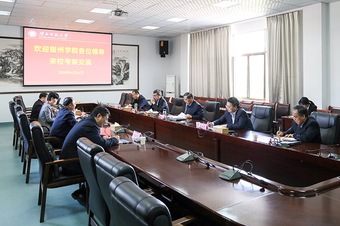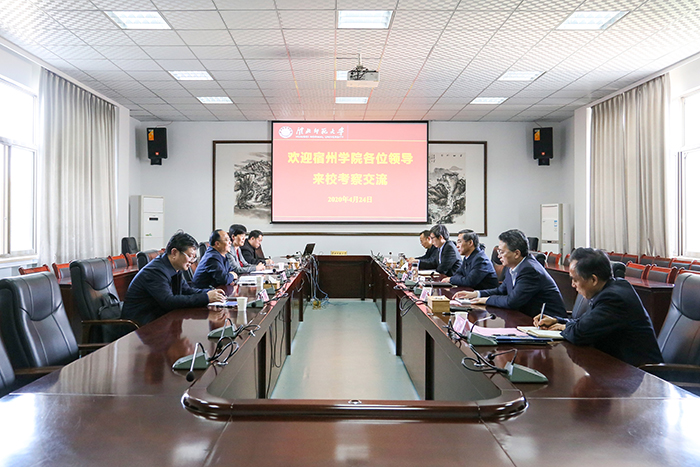 陈士夫代表学校对陈国龙书记一行表示热烈欢迎,指出英国best365官方网站入口和宿州学院长期以来联系密切,在人才培养、学科建设等领域开展了多方位的合作,结下了深厚的友谊,希望双方进一步优势互补、拓展合作领域,推进两校在科学研究、学位点建设、服务地方发展等方面的交流与合作。