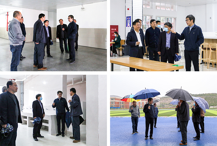 姚佐文细致查看了绿化景观、二期学生公寓(食堂)、学生浴池、高知公寓等建设项目,以及医疗观察点、学生食堂等防疫措施落实和开学准备情况;听取了基建处、后勤服务与管理处、国资处、网络与信息管理中心等单位负责人的汇报。