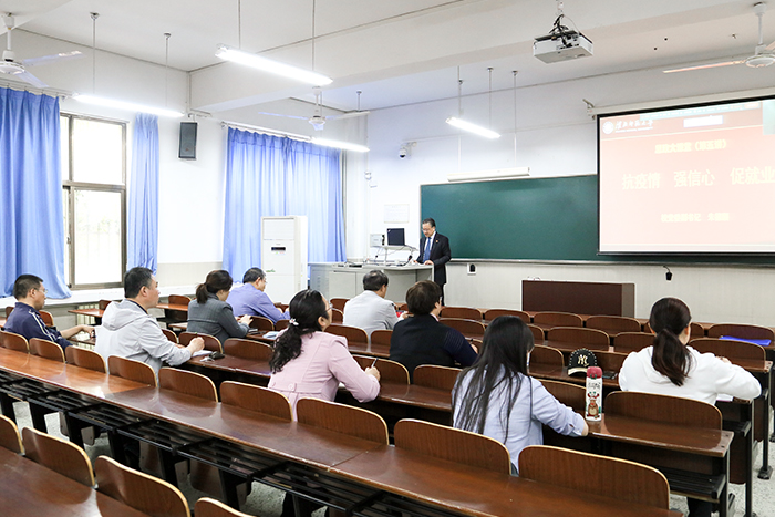 校党委副书记朱德顺通过线上“思政大课堂”倡导青年学子《抗疫情 强信心 促就业》