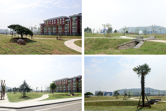 根据建设绿色、生态、文明校园的要求,在设计时,融入了“海绵城市”的理念,建设了雨水收集、微地形、步行桥等景观,体现了“树美草多”通透敞亮的园林效果,进一步增强了滨湖校区中心景观带和主入口广场景观区的美誉度。