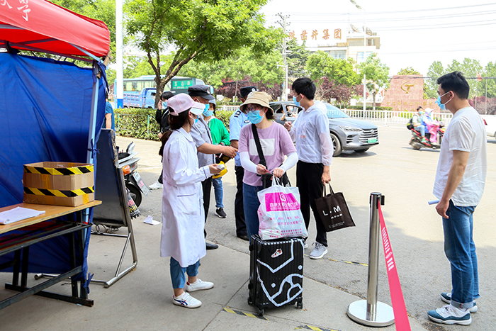 陈士夫一行重点检查学校唯一的进出口北大门,对一直以来坚守在防疫一线的值班和执勤人员表示慰问。陈士夫强调要把好入校第一道关,严格进校程序,合理设置入校区域和隔离区域,严格执行测温、身份核验和消毒等程序,维持好入校秩序,确保学生安全有序入校。