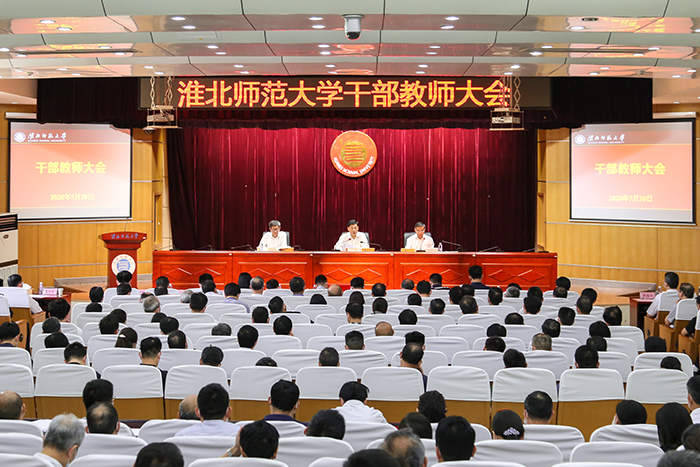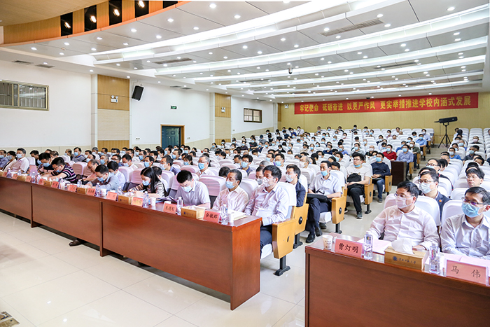 5月20日,学校在文南111报告厅召开干部教师大会。考核组全体成员,学校领导班子成员,机关部门正副职、学院及二级机构党政正职(含主持工作的副职),省级以上“两代表一委员”、民主党派市级以上主委,学校教代会执委,正高职称人员,学生代表等参加会议。校党委书记陈士夫主持会议。