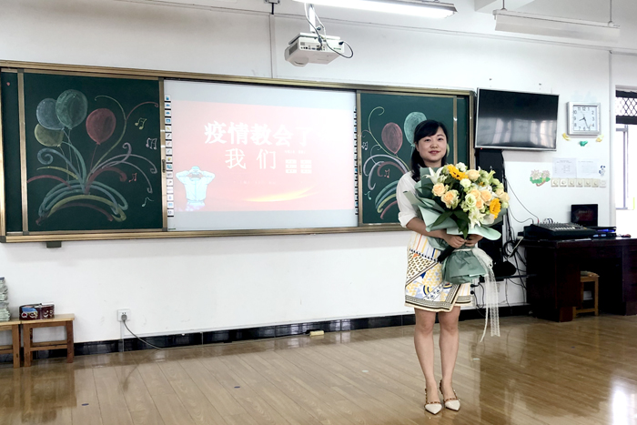 在众多班级中,六年级的开场显得格外与众不同,现场请到了一位特殊的学生家长,她就是此次新冠疫情防控援鄂医护人员-最美逆行者王金玲,武汉疫情爆发后,她第一时间请战支援武汉,并以第一批医护工作者到达,全力以赴投入疫情防控的工作中,冒着生命危险救治患者,为后续全国防控工作争取到了最宝贵的时间,积累了最难得的经验。学生代表为她献花,表达了对她的敬意,她给同学们讲述了自己在武汉的经历,同学们听得格外认真。感谢自己生活中有这么多无私奉献的人们,感谢自己生活在这个伟大的国度——中国!