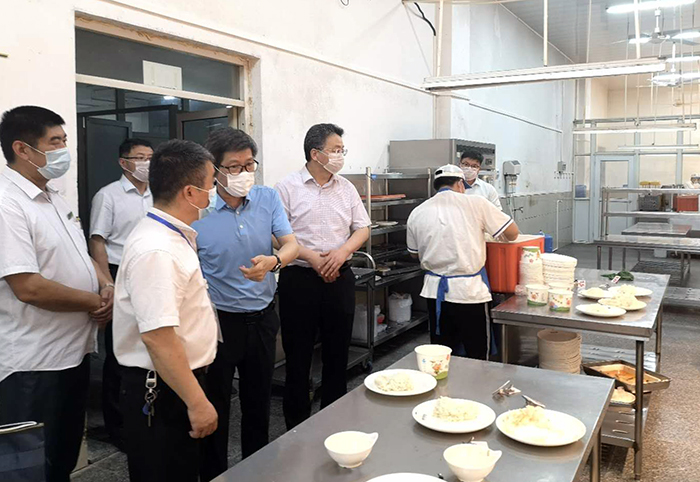 随后,姚佐文一行对滨湖校区学生食堂进行调研,特别强调在疫情防控期间食堂的安全卫生工作,要求承包单位把学生的健康放在第一位,确保学生就餐环境和餐饮安全。