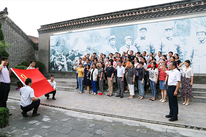 为迎接中国共产党建党99周年,进一步加强党员党性修养,增强党员意识,6月30日上午,学校组织先进基层党组织负责人、优秀共产党员和优秀党务工作者代表赴安徽省党员干部党史教育基地——淮海战役总前委旧址开展党性教育活动。校党委副书记朱德顺参加活动。
