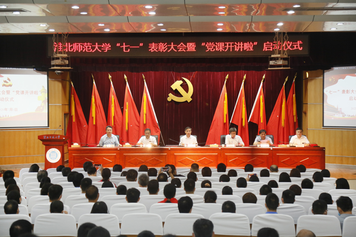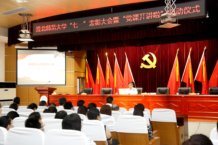 校党委书记陈士夫发表讲话。他指出,中国共产党走过的九十九年,是马克思列宁主义同中国实践相结合的九十九年,是为民族解放、国家富强和人民幸福不断艰苦奋斗、发愤图强的九十九年,是为完成肩负的历史使命而不断追求真理、发展壮大的九十九年。在民族危急关头,只有中国共产党才能承担起拯救国家和民族的重任,才能凝聚起一个民族不可战胜的力量。陈士夫表示,突如其来的新型冠状病毒疫情,再次锤炼了中华民族的意志与品格,考验了党的坚强领导。学校各基层党组织统一行动,团结协作,充分发挥了战斗堡垒作用;各级领导干部挺身而出、身先士卒,充分发挥了模范带头作用。陈士夫要求,广大党员要坚定政治立场,发挥战斗堡垒作用。不断提高全校各级党组织的创造力、凝聚力和战斗力,始终发挥先锋模范作用;要加强执政能力建设,建设高素质的党员干部队伍。广大党员要以扎实的政治素质、业务素质和工作能力,团结协作、服务师生、求真务实、廉洁自律;要弘扬淮师大精神,凝聚共同奋斗的精神力量。以立德树人为根本任务,不断推进教育事业持续发展。