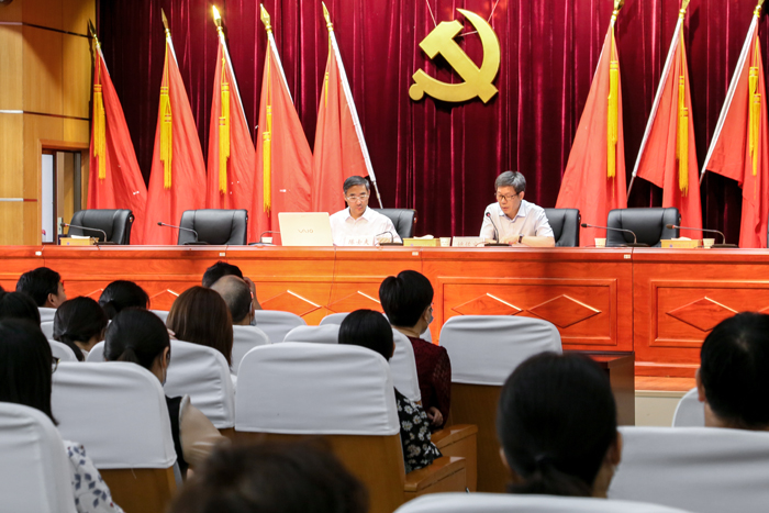 7月1日上午,学校在文南111报告厅举行“七一”表彰大会暨“党课开讲啦”启动仪式。全体党员校领导、党员处级干部、师生党员代表、受评选表彰的先进党组织负责人、优秀共产党员和优秀党务工作者参加会议。会议由校党委副书记、校长姚佐文主持。