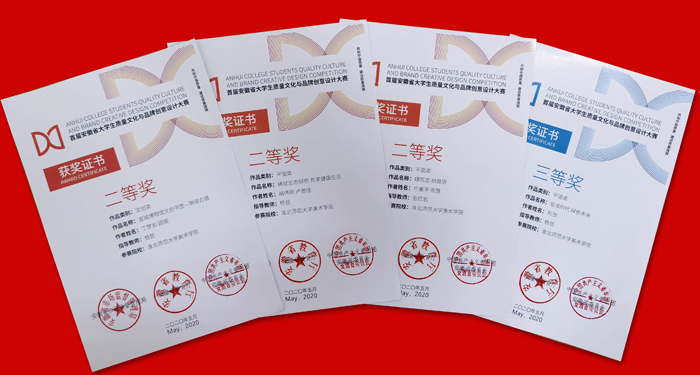 在由安徽省教育厅、省市场监督管理局和中国共产主义青年团安徽省委员会联合举办的“首届安徽省大学生质量文化与品牌创意设计大赛”中,由教师张红岩指导学生牛素平、商慧创作的《绿农态 棋盘塔》获平面类“二等奖”,教师杨哲指导学生丁梦如、顾瑞创作的《宣城博物馆文创书签——琳琅古镜》获文创类“二等奖”,指导学生胡伟明、卢增佳创作的《铸就生态绿色 共享健康生活》,指导学生刘孜创作的《安泽时代 绿色未来》分别获平面类“二等奖”“三等奖”。