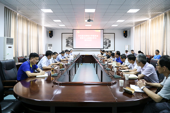 7月7日,校党委理论学习中心组理论学习研讨会议在相山校区行政办公楼第二会议室召开。校领导、校党委常委、校党委委员、校纪委委员参加会议。会议由校党委书记陈士夫主持。