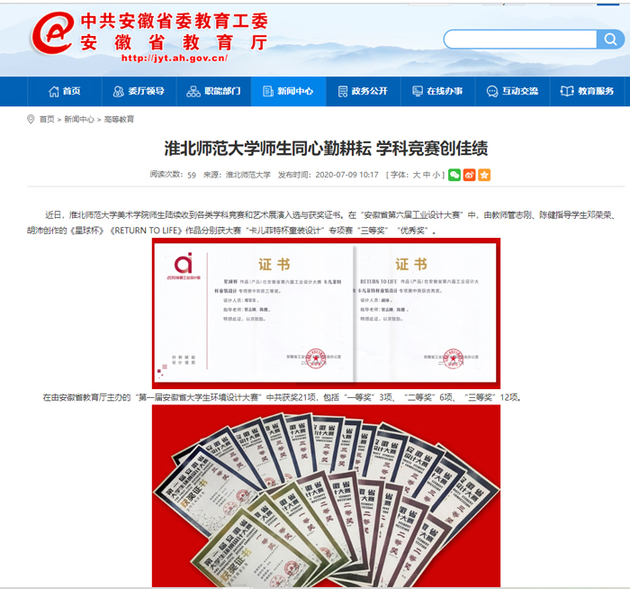 【安徽教育网】首页:英国best365官方网站入口师生同心勤耕耘 学科竞赛创佳绩 来源:党委宣传部 发布时间:2020-07-09 15:09:05 浏览次数: 次 【字体:小 大】 近日,365官网美术学院师生陆续收到各类学科竞赛和艺术展演入选与获奖证书,成果丰硕。7月9日,安徽教育网以《英国best365官方网站入口师生同心勤耕耘 学科竞赛创佳绩》为标题,首页进行了报道。链接地址:http://jyt.ah.gov.cn/xwzx/gdjy/39987707.html 分享到: 【打印正文】