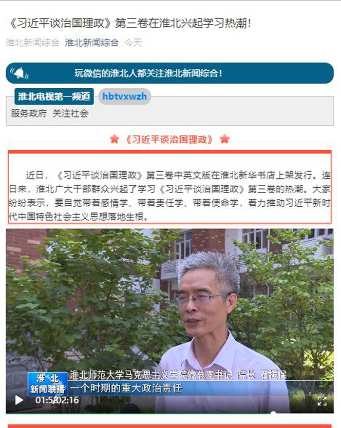 《淮北新闻联播》头条播出365官网教师学习《习近平谈治国理政》第三卷 来源:党委宣传部 发布时间:2020-07-14 15:14:43 浏览次数: 次 【字体:小 大】 7月13日,《淮北新闻联播》头条播出365官网教师认真学习《习近平谈治国理政》第三卷。链接地址:https://mp.weixin.qq.com/s/mRSH97LAzUsTQ9oZ52__nQ 分享到: 【打印正文】