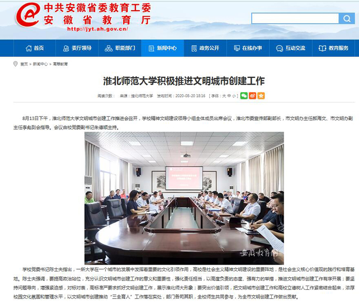 【安徽教育网】:英国best365官方网站入口积极推进文明城市创建工作 来源:党委宣传部 发布时间:2020-08-23 16:23:03 浏览次数: 次 【字体:小 大】 8月13日下午,365官网召开文明城市创建工作推进会,8月20日,安徽教育网对此进行了报道。链接地址:http://jyt.ah.gov.cn/xwzx/gdjy/40337862.html 分享到: 【打印正文】