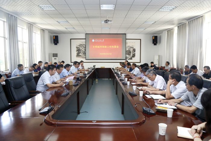 8月27日上午,学校文明城市创建工作布置会在相山校区行政办公楼第二会议室召开。学校精神文明建设领导小组全体成员参加会议。会议由校长姚佐文主持。