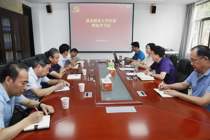 2020年9月17日,校纪委在相山校区行政楼党员活动室召开纪委委员理论学习会,全体纪委委员和纪委工作人员参加会议。会议由校党委常委、纪委书记曹灯明主持。
