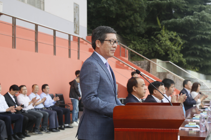 校长姚佐文在致辞中代表全体师生员工向2020级新生表示热烈欢迎,并提出三点建议。一是弘扬抗疫精神,做志存高远的新时代青年学生。青年一代不怕苦、不畏难、不惧牺牲,把个人价值融入国家抗疫斗争中,用臂膀扛起如山的责任,展现出青春激昂的风采,展现出中华民族的希望,青年一代在这场抗疫斗争中的突出表现令人欣慰、令人感动。作为新时代青年,我们要大力弘扬伟大的抗疫精神,志存高远,不忘“为中华之崛起而读书”的初心,把自己的小我融入祖国和人民的大我之中,在“大我”中实现“小我”,与时代同步伐、与人民共命运,在新时代的征程上当先锋、建新功,不负家国期盼,不负时代重托。二是弘扬抗战精神,做砥砺奋进的新时代青年学生。希望同学们尽快地进入角色,珍惜大学时光,刻苦努力奋斗,在奋斗中学习知识、投身实践,不断地充实自己、提高自己、丰富自己;在奋斗中理解家长的期盼、感悟师长的教诲、珍惜朋友的情谊;在奋斗中学会感恩、学会包容、学会谦让、学会助人;在奋斗中把青春镌刻为激情燃烧的岁月,高昂青春之朝气,抒发青春之豪情,创造青春之奇迹。三是弘扬科学家精神,做求实创新的新时代青年学生。要弘扬科学家追求真理、严谨治学的求实精神,弘扬科学家敢为人先、勇攀高峰的创新精神,真正做到志存高远、砥砺奋进、求实创新,为中华民族的伟大复兴做出自己的贡献。