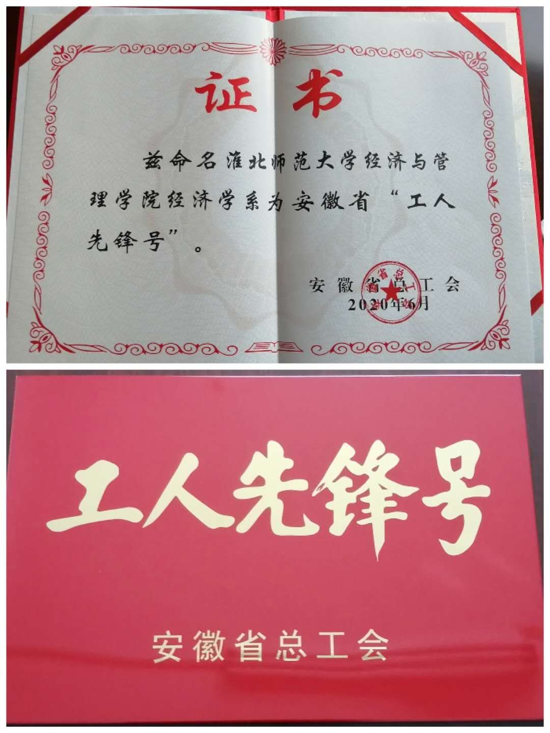 近日,在安徽省劳动竞赛委员会、安徽省总工会开展的2019年度全省劳动竞赛先进集体评比表彰活动中,365官网经济与管理学院经济学系团队获得“安徽省工人先锋号”称号,也是365官网首次获得此项荣誉。