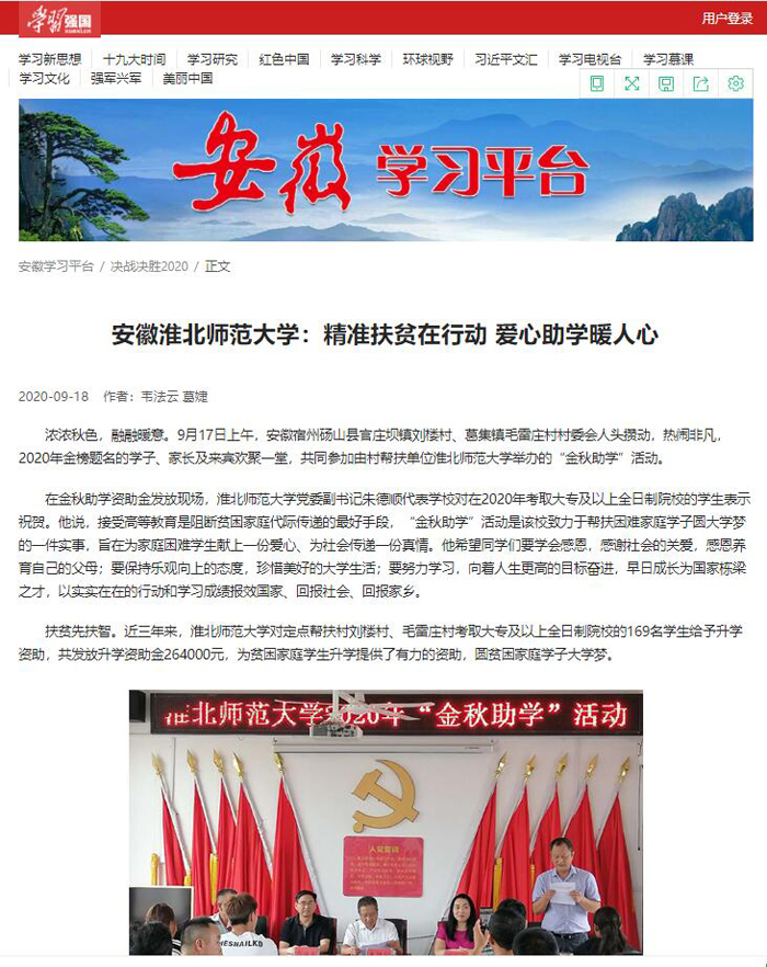 【学习强国】:安徽英国best365官方网站入口:精准扶贫在行动 爱心助学暖人心