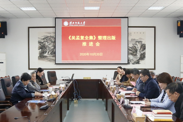 吴老先生女儿吴欣、吴布参与整理出版工作的讨论,并作了积极、恳切的表态发言。他们感谢学校对吴老及家人的高度重视,尊重学校出版工作方案,高度赞扬学校的远见卓识。她们表示,尽快整理出版《吴孟复全集》是学校和她们的共同心愿,推进会的召开标志着出版工作进入新阶段,她们愿意全力支持、配合学校做好各项工作,同意委托授权出版、选择合适的出版单位、对文本进行必要的编篡等。她们也希望学校全面加强吴老先生学术文化的保护与传承,加快出版工作进度。