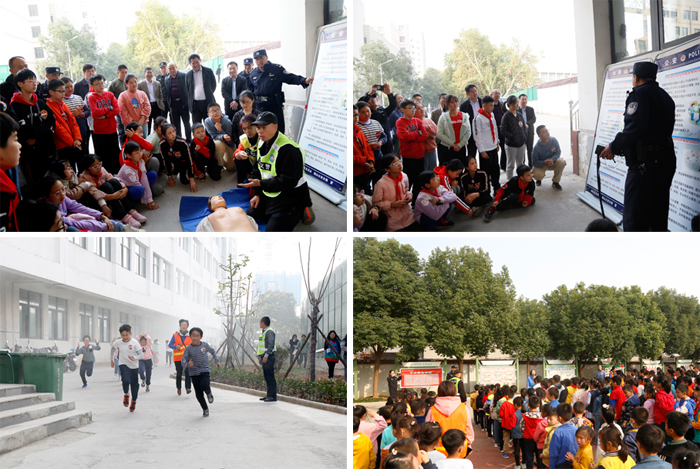 2点40分,随着警报声的响起,附小全体师生迅速进入地震逃生状态,每位教师分工明确,引导学生快速有序地撤离到指定的安全位置,整个疏散过程仅用时2分28秒,圆满完成了地震逃生演练任务;地震逃生演习结束后,淮北市红十字应急救援队赵彬(江淮义警)还对六年级全体师生进行了心脏复苏紧急救援的培训,义警讲解示范后,分别请三位学生展示学习效果并予以动作纠正,真正达到了培训目的;高校警务站(东区派出所)干警给六年级学生宣讲了防恐知识,同时告诉学生,在实际生活中遇到此类事件该如何妥善处理。通过以上三种活动,学生对应急逃生、紧急救援、反恐辨别领域的认识和实践能力有了进一步的提升,对自身安全和他人安全多了一份保障。本次活动得到了保卫处、高校警务站、校团委、后勤服务与管理处、宣传部、附中等部门的大力支持与配合。