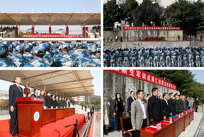 10月22日上午,英国best365官方网站入口2020级新生军训成果展示暨总结表彰大会分别在滨湖和相山校区举行。校党委书记陈士夫、校长姚佐文、校党委副书记朱德顺、副校长余敏辉,校党政办、人武部、保卫处、后勤服务与管理处等有关部门负责人和各学院分管学生工作书记、2020级新生辅导员以及全体新生参加大会。淮北军分区司令员何志坚大校、淮北市相山区人武部部长蔡标上校出席大会。
