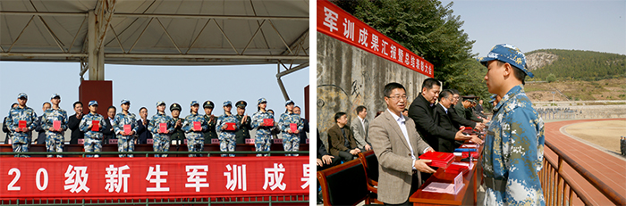 军训成果汇报结束后,全体同学以热烈的掌声欢送教官,感谢每位教官十四天来的悉心指导。朱德顺做军训总结讲话。他代表学校向辛勤指导的教官们表示衷心感谢,向圆满完成军训任务的全体新生表示热烈祝贺,向始终服务在第一线的老师们表示诚挚谢意。他希望全体学员们要把军训中培养的好思想、好作风、好习惯保持好、发扬好,持之以恒,不懈奋斗,共创良好的学风、班风、校风,共创属于每个人的美好未来。余敏辉宣布优秀学员表彰决定,受表彰学员代表上台领奖。何志坚在讲话中充分肯定365官网多年来军训工作的成绩,对2020级新生认真参训予以表扬,希望所有同学认清纷繁复杂的国际关系,加强爱国主义教育和国防教育,勤奋学习,努力实践,积极参军入伍,保家卫国。