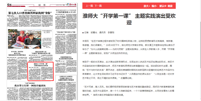 【淮北日报】:淮师大“开学第一课” 主题实践演出受欢迎