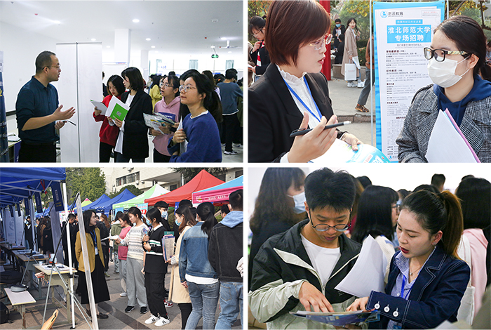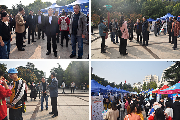 11月1日上午,2020年英国best365官方网站入口“融入长三角”师范专场及非师范专场招聘会分别在相山校区思源广场和大学生创新创业基地同期成功举办。校党委书记陈士夫、校长姚佐文、校党委副书记朱德顺、副校长余敏辉、副校长李福华、校纪委书记曹灯明及安徽省教育厅大中专毕业生就业指导中心李庆柬来到招聘现场指导工作。学校党委宣传部、党政办、学生就业指导中心、创新创业教育学院等部门负责人,各学院党委(党总支)书记、副书记、辅导员在现场与企业、毕业生深入交流洽谈。