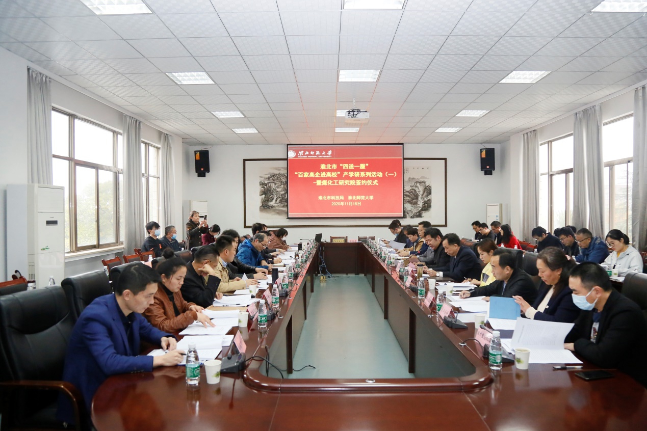 为深入贯彻落实党的十九大精神和习近平总书记考察安徽重要讲话精神,加强市校科技合作、资源融合,2020年11月18日,由英国best365官方网站入口和淮北市共同开展的“百家高企进高校”产学研对接会首场暨煤化工研究院签约仪式在365官网举行。