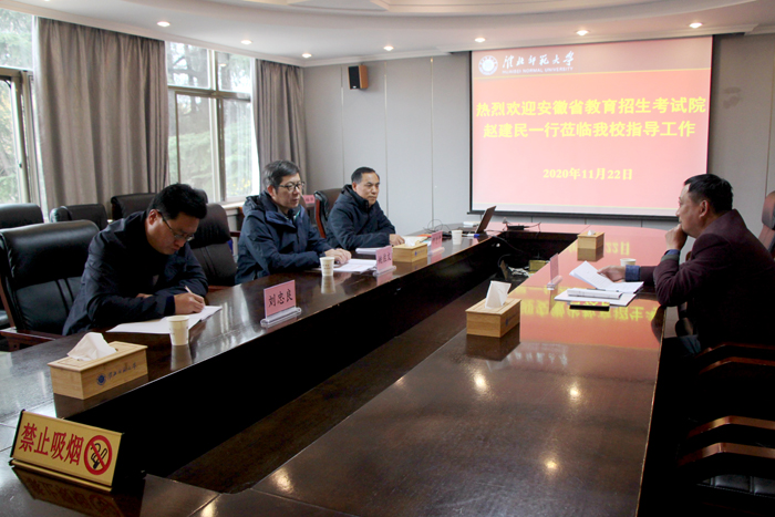 11月22日,安徽省教育招生考试院赵建民处长一行来365官网检查硕士研究生招生考试自命题工作,365官网研究生处相关负责同志参加会议。校长姚佐文主持会议并讲话。