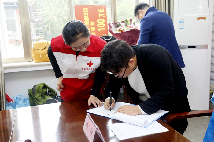 朱德顺在讲话中首先代表学校向杨帆同学无私奉献精神致以崇高的敬意,并对其家人表示亲切地慰问!他指出,志愿捐献造血干细胞是挽救他人生命、利国利民的好事,是非常高尚伟大的事情。他强调,学校将积极鼓励和宣传杨帆挽救生命无私奉献的行为和精神,用身边事教育身边人,在全校范围内大力宣传和弘扬关爱生命、热心公益的道德风尚。最后,他祝愿杨帆同学顺利完成捐献,早日胜利归来!