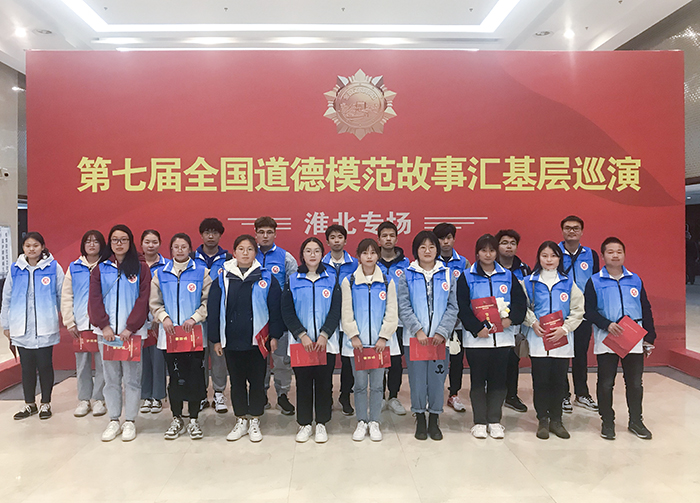 11月20日下午,由中央文明办、中国文联主办,中国曲艺家协会、中共安徽省委宣传部、安徽省文明办、安徽省文联、淮北市文明委承办的第七届全国道德模范故事汇基层巡演淮北专场举行。学校选派学生代表组成方队赴现场参加巡演,并组织在校师生通过电视直播、网络转播等形式观看本次巡演活动。